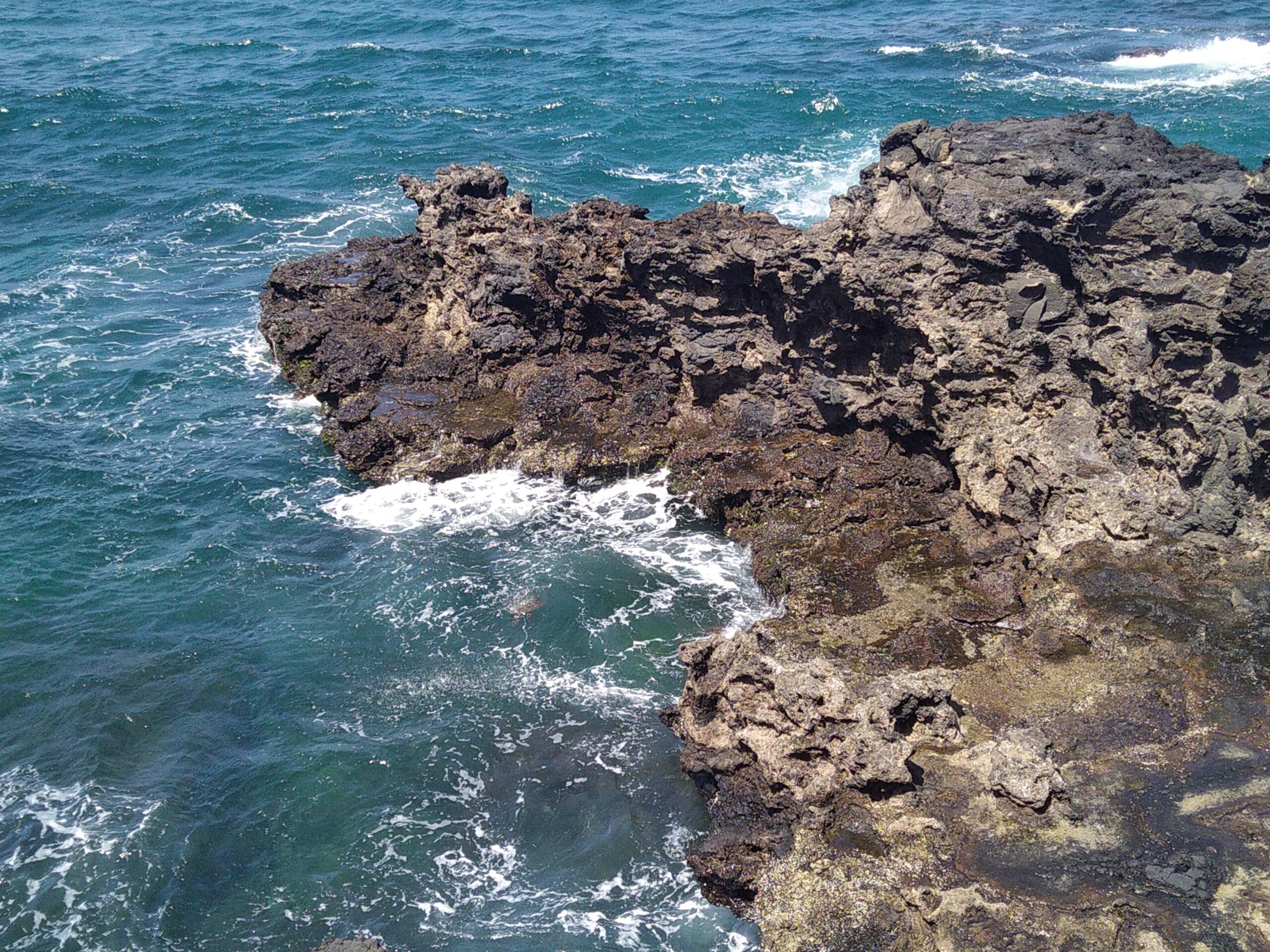 Observation possible depuis les falaises où vivent des petits requins côtiers ; leur absence est rare mais toujours possible, laissant place à la beauté brute de la baie.
